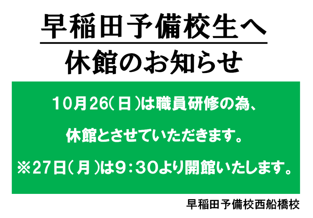 いつも早稲田予備校西船橋校をご利用いただき、誠にありがとうございます。