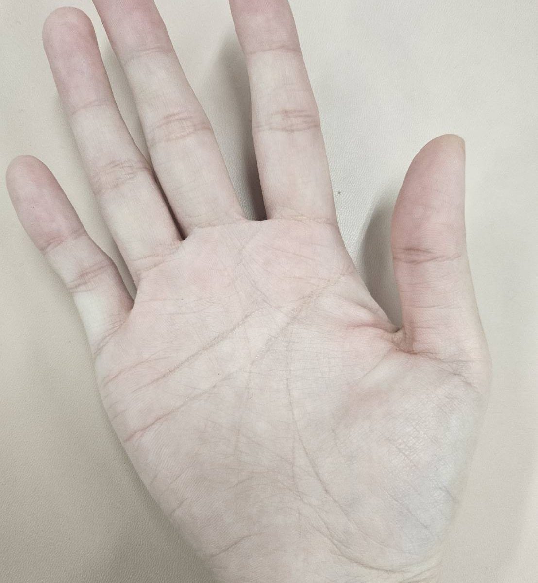 あなたの知能線は、長めでなだらかに下がるタイプに見えます。