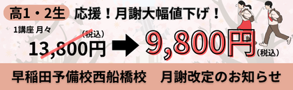 早稲田予備校西船橋校では今年4月より、受講料金の改定を断行いたしました。
